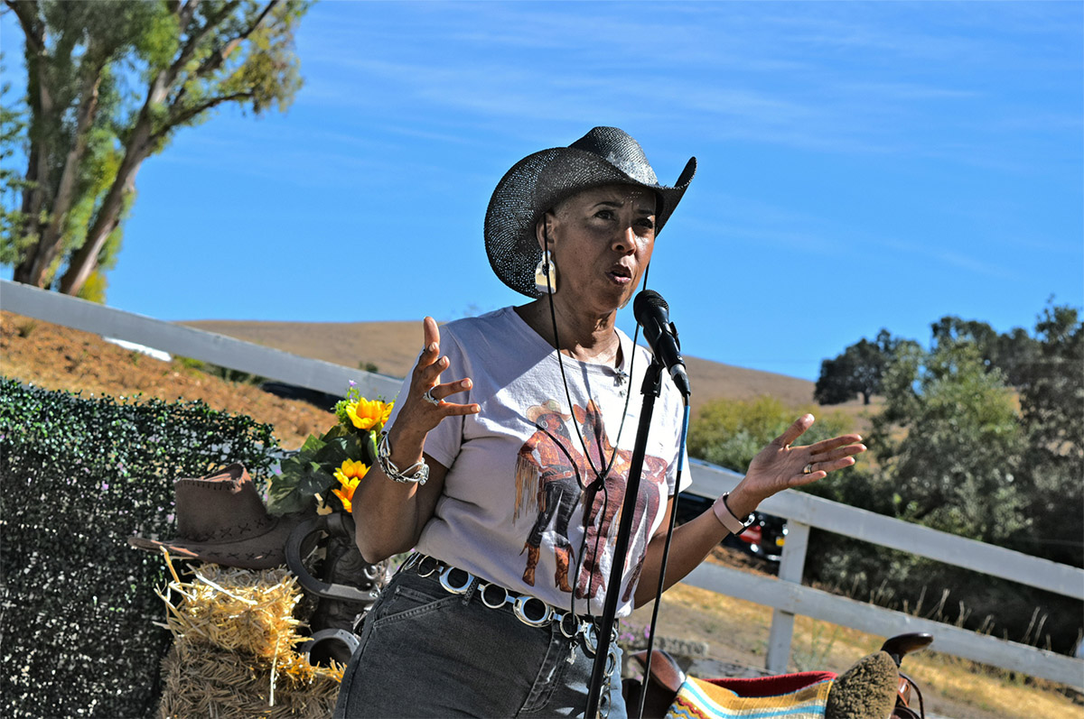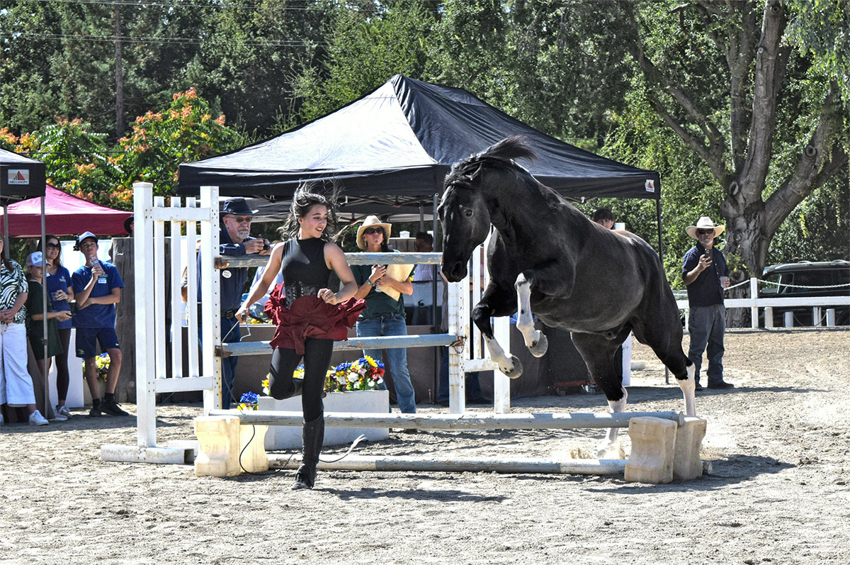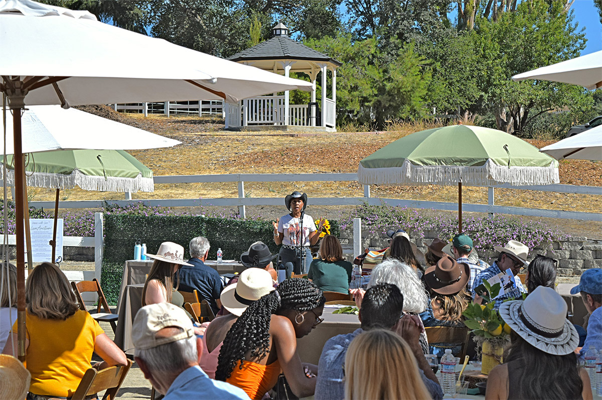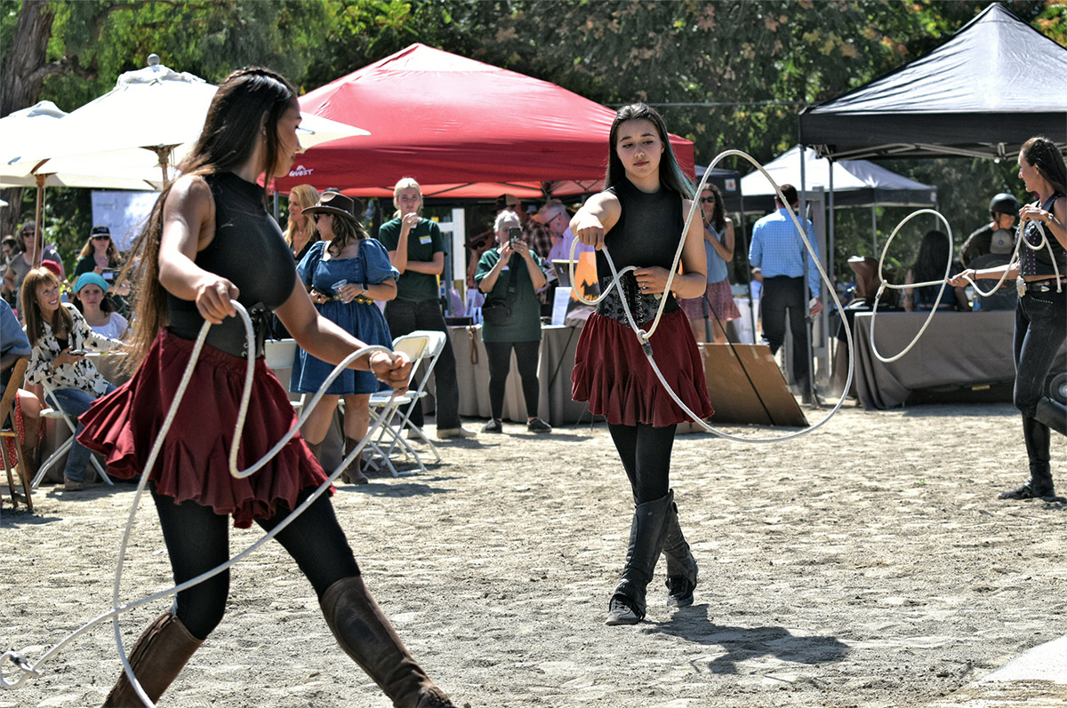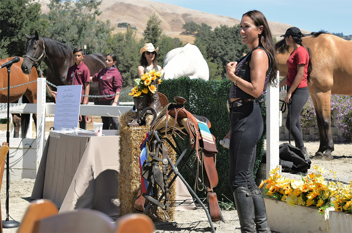 The event opened with a moving equestrian performance led by Kansas Carradine and her daughters, accompanied by their horse, Dude. Kansas set a reflective tone with a grounding meditation, inviting guests to calm themselves and fully take in the sensory atmosphere—horses, birds, soft breeze—before transitioning into a bridle-free ride and a lasso routine that underscored themes of trust, harmony, and genuine connection between horse and human. Also featured was a hunter-jumper demonstration by Five Star Equestrian, showcasing precision, rhythmic movement, and the rider-horse partnership.